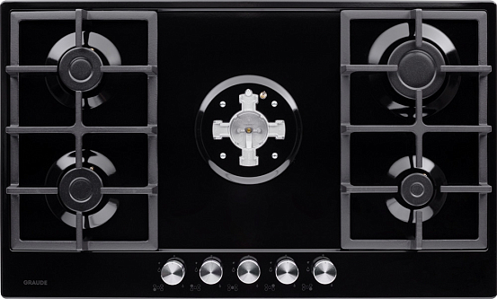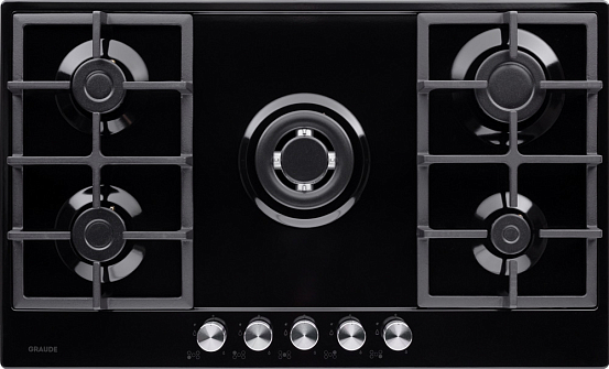 Стильная газовая панель шириной 90 см в черном цвете с 5 конфорками разной мощности, включая WOK. Эмалированная поверхность устойчива к повреждениям, а чугунные решетки надежно удерживают посуду. Автоматический электроподжиг и система «GasControl» обеспечивают безопасность и комфорт.