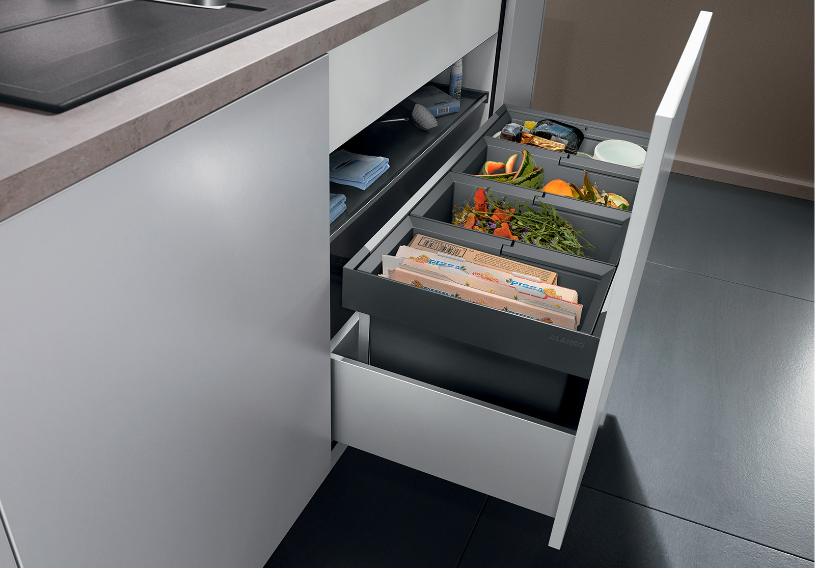 Система сортировки отходов FLEXON II Low 90/4 от Blanco воплощает философию бескомпромиссного качества, инновационного дизайна и функциональности, превращая самое активное место на кухне в продуманный, эргономичный и эстетичный центр для приготовления пищи.