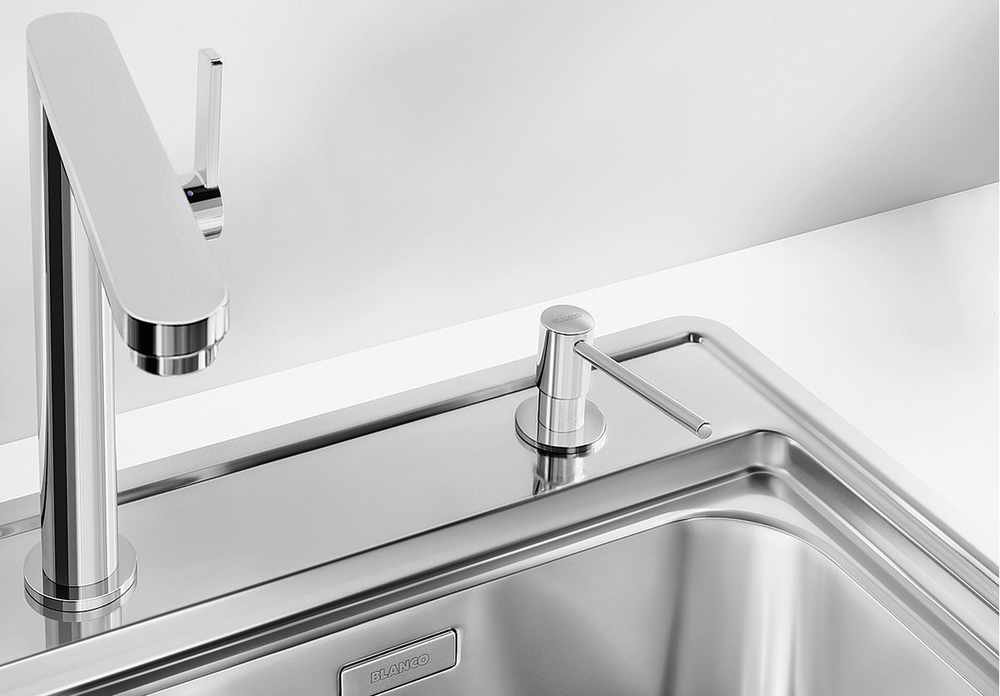 Дозатор TORRE 527722 от Blanco воплощает философию бескомпромиссного качества, инновационного дизайна и функциональности, превращая самое активное место на кухне в продуманный, эргономичный и эстетичный центр для приготовления пищи.