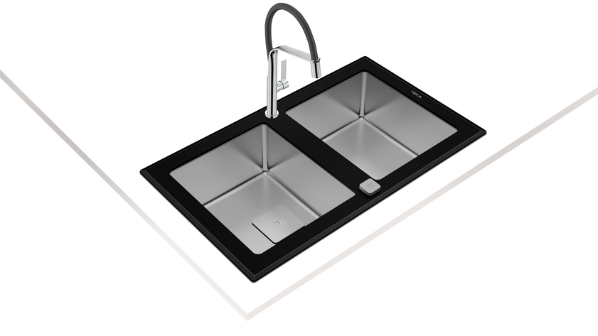 • Нержавеющая сталь AISI 304 полированная, 1 мм / Чёрное закалённое стекло, 8 мм