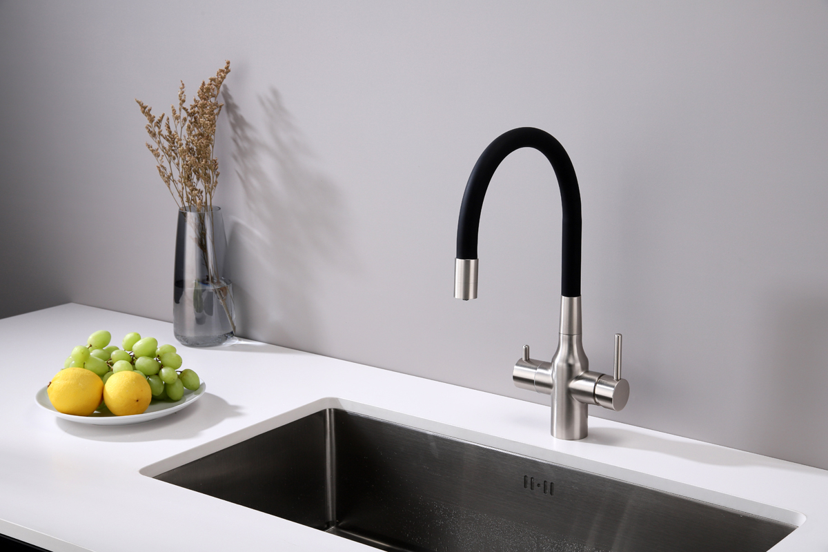 Смеситель для кухни SALIX c возможностью подключения системы фильтрации питьевой воды изготовлен из высококачественной латуни, которая отвечает высочайшим европейским стандартам качества, не содержит свинца, не разрушается со временем и безопасна для здоровья.